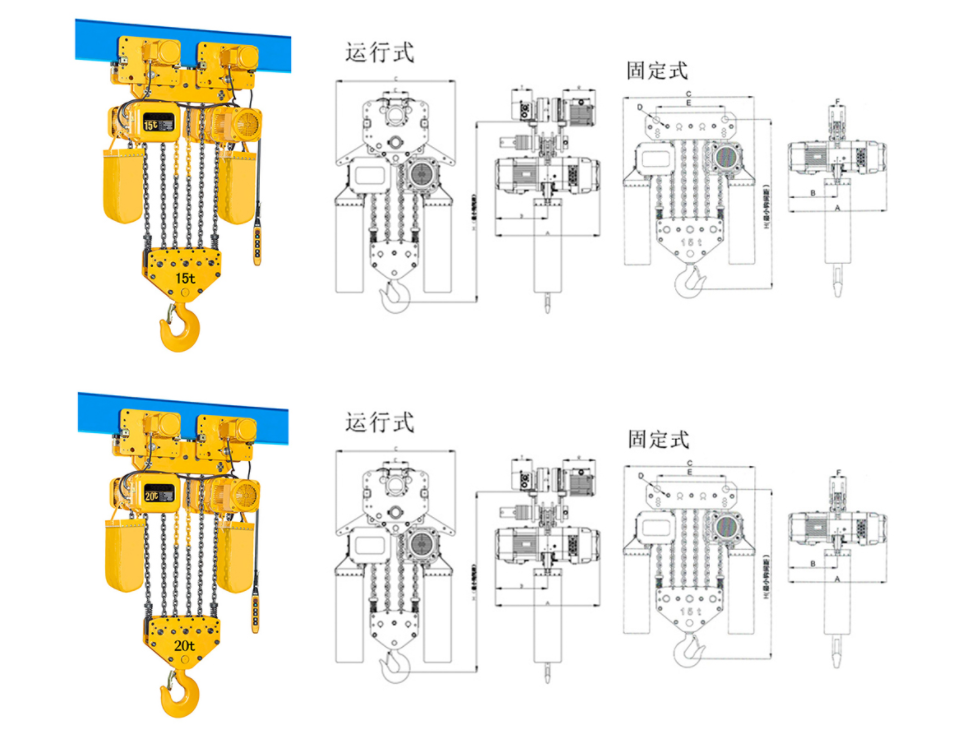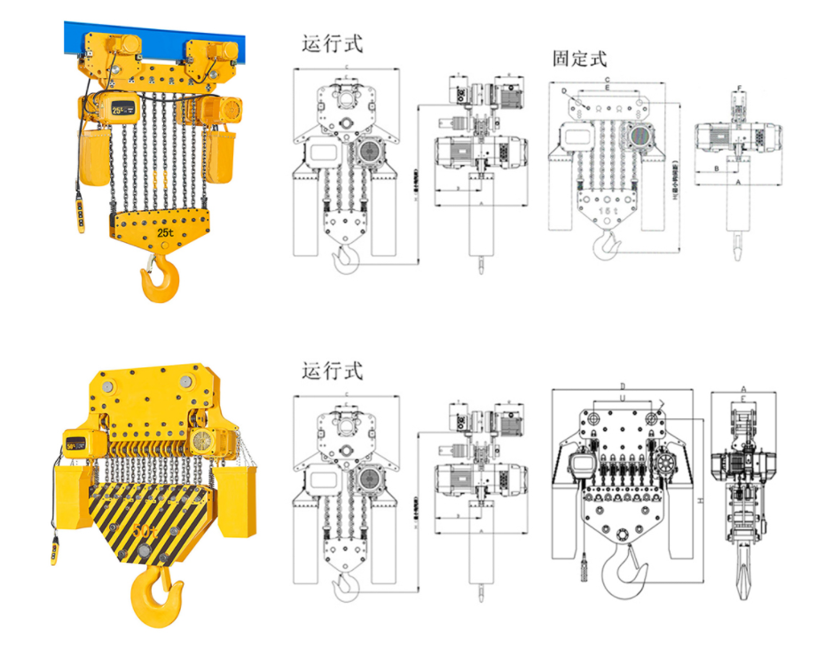 | 運(yùn)行式環(huán)鏈電動葫蘆(30T-50T)尺寸參數(shù): | ||||||
