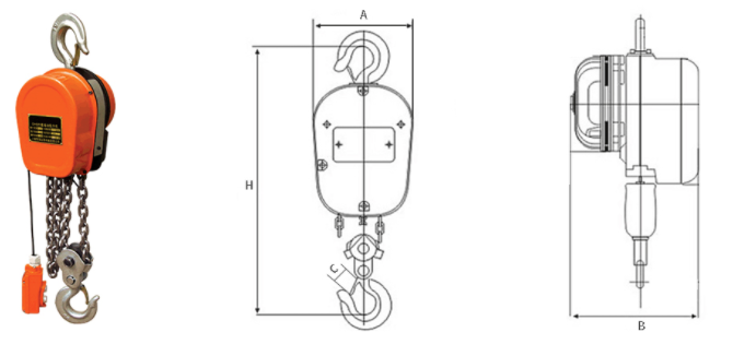 | 型號(hào) | 額定載荷 | 實(shí)驗(yàn)載荷 | 電機(jī)功率 | 電源 | 提升速度 | 起重鏈條數(shù) | 標(biāo)準(zhǔn)起升高度 | 圓鋼直徑 | 主要尺寸 | 凈重 | 裝箱尺寸 | 起重高度每1M加重量 | ||||